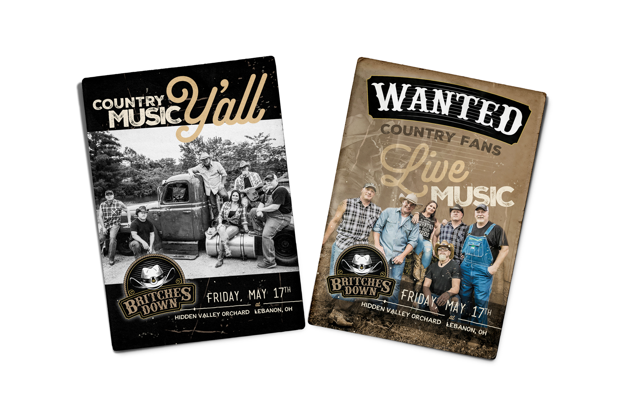 Britches Down, a high-energy modern country band with a rapidly expanding regional following, approached me to elevate their brand and unify their marketing efforts. In addition to helping craft and solidify their visual identity, I direct all photography and promotional imagery and oversee the full spectrum of their design needs.