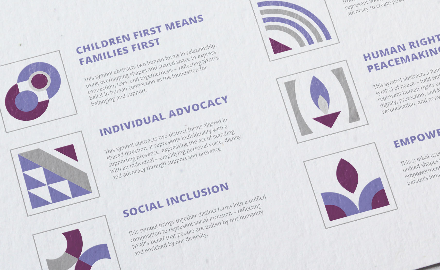 NYAP (National Youth Advocate Program) supports children, youth, and families through a wide range of programs, resulting in a large and diverse set of communication materials. Over time, these materials had grown visually inconsistent, making it difficult to maintain clarity, cohesion, and approachability across guides, reports, and supporting assets. The challenge was to bring visual alignment to this complexity without losing the warmth and sensitivity required for mission-driven work.